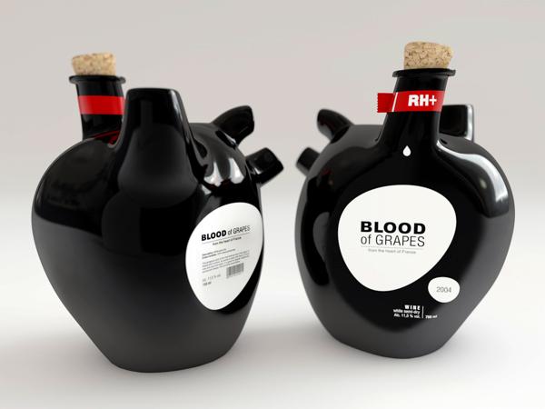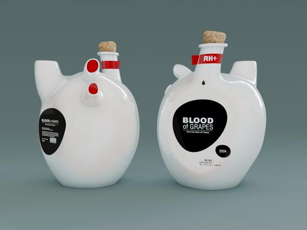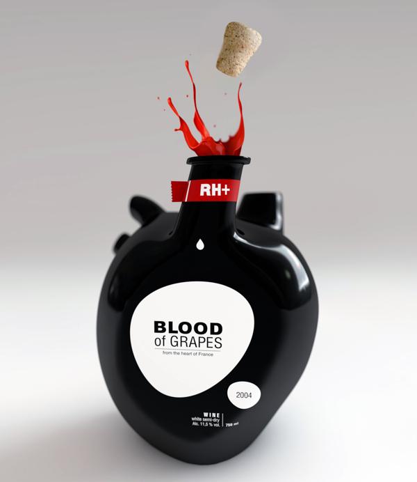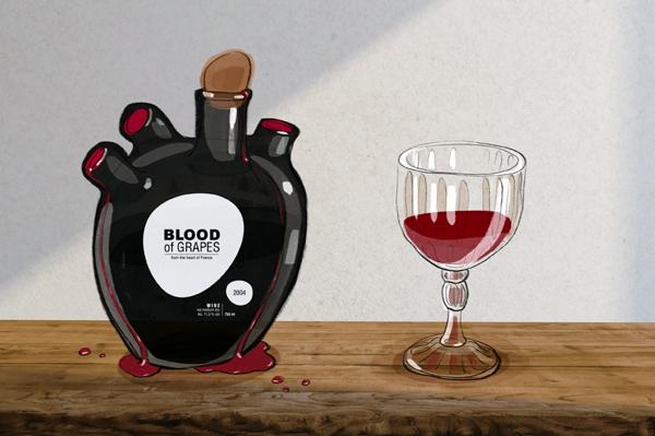 法國BLOOD of GRAPES品牌葡萄酒特色包裝設(shè)計(jì),葡萄酒是葡萄的血液,心臟是它的容器?谔枴胺▏男呐K”支持整個(gè)設(shè)計(jì)概念。