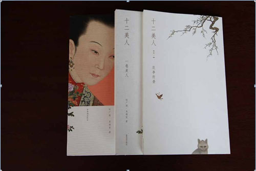 《十二美人》(紫禁城出版社) 風(fēng)格靜謐而舒展,美人嫻靜的形貌與品性得到充分表現(xiàn);同一頁面上形成動靜結(jié)合的設(shè)計感,而留白成為設(shè)計的中心;封面與封套有機(jī)地融為一體,相同的元素在多處形成呼應(yīng);兩函而一匣的安排既闡釋古典的主題,又代表了前衛(wèi)的設(shè)計潮流;此書可稱為書籍設(shè)計的杰作