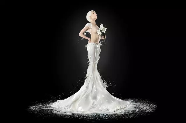 這組炫酷的照片來(lái)自現(xiàn)居倫敦的攝影師 Jaroslav Wieczorkiewicz。他將這個(gè)系列命名為“借助牛奶,凍結(jié)時(shí)間,升華為高端時(shí)尚”(Made with milk, frozen in time, and morphed into high fashion)。