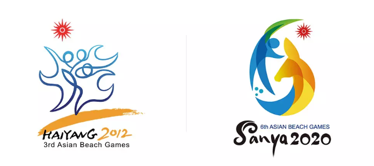 上圖左為2010年第3屆亞洲沙灘運動會會徽。我個人而言,我更喜歡2012版本的。流暢的線條勾勒出三個動感的人物聯(lián)手共舞,同享沙灘運動帶來的無窮快樂。當(dāng)然,只有主圖形中隱藏的漢字「海」,這個解釋就有點牽強了。