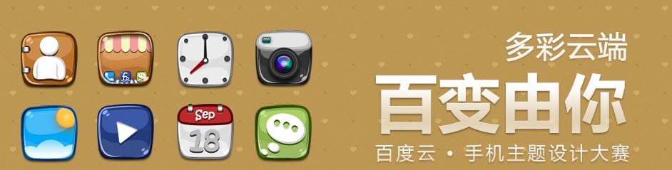 多彩云端、百變由你——首屆百度云・手機主題設計大賽開始啦!本次大賽旨在給優(yōu)秀的設計者們提供一個施展才華的舞臺,同時,為百度云ROM的眾多用戶帶來更豐富、更多彩、更具創(chuàng)意的手機桌面主題。