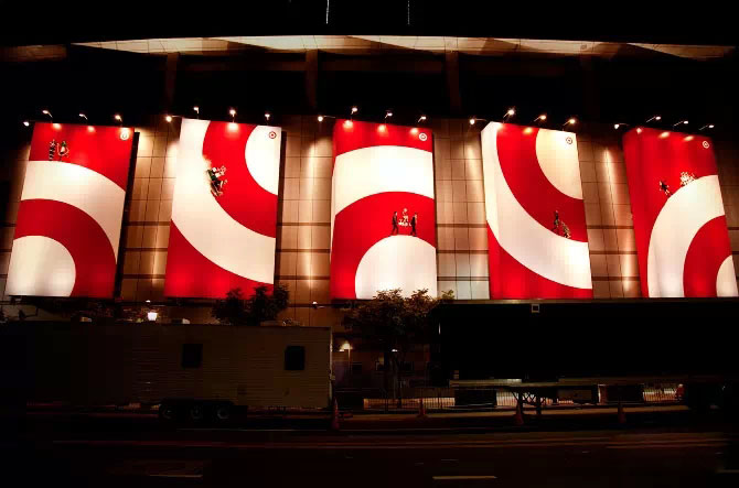 美國“塔吉特”超市的品牌標志圖形是“標靶”,輔助圖形截取和放大“標靶”的不同局部,形成更加鮮明醒目的品牌聯(lián)想效果。