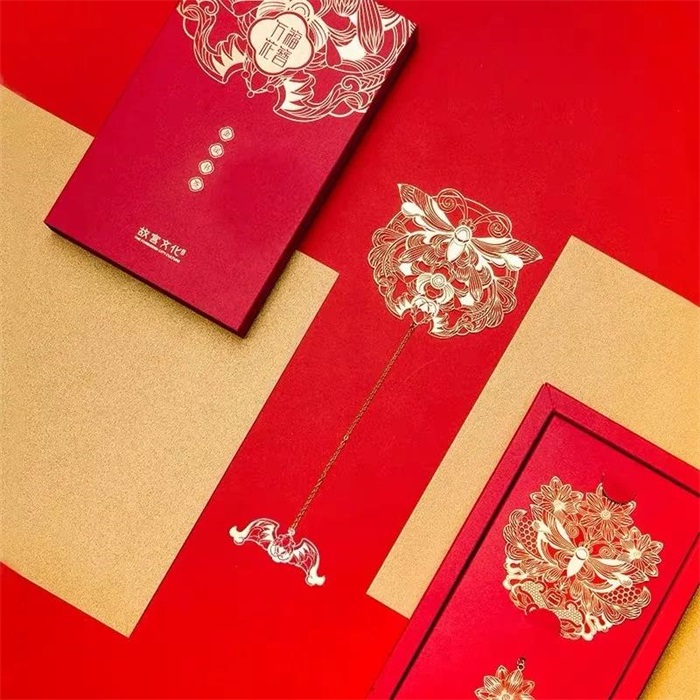 這款書簽外盒采用經(jīng)典中國紅包裝