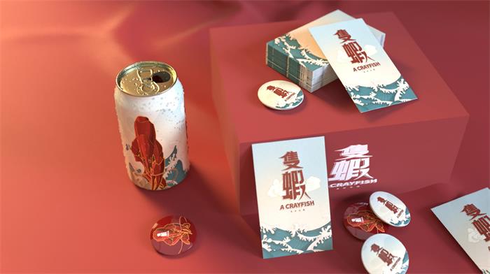 LOGO的設(shè)計(jì)模仿小龍蝦的形態(tài),選用硬朗卻又不是趣味的中國(guó)紅字體,帶著一種潮流復(fù)古感,棱角分明的細(xì)節(jié)處理如同小龍蝦的爪子堅(jiān)硬突出。品牌的輔助元素運(yùn)用了祥云紋,具有獨(dú)特代表性的中國(guó)文化符號(hào)寓意祥瑞之云氣,表達(dá)了吉祥、喜慶、幸福的愿望以及對(duì)生命的美好向往。祥云紋造型獨(dú)特,婉轉(zhuǎn)優(yōu)美,其美好吉祥的寓意宣傳了中國(guó)傳統(tǒng)文化,使得品牌更具生命力。采用了紅、藍(lán)、黃的標(biāo)準(zhǔn)色與輔助色,低飽和度的顏色具有傳統(tǒng)色感,仿佛取色于天空、河流、云彩。鮮艷明麗的色彩構(gòu)圖,紅與白相撞迸出火花形成鮮明的視覺(jué)效果。