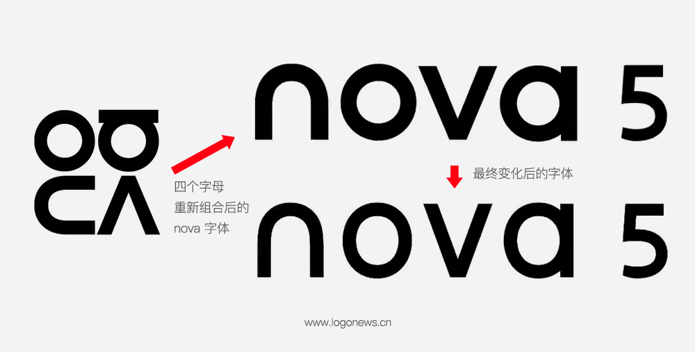 雖然兩種字體均為無襯線小寫字體,很明顯,作為符號用的字體要比最后定格畫面中的nova5 字標(biāo)的字體更粗,字間距也更緊湊。特別是“o”和“a”字,兩種有很明顯的區(qū)別。不過從目前官方宣傳的相關(guān)物料中可以確定,最后定格的字標(biāo)(字體纖細(xì)的這款)將是nova5正式的LOGO。
