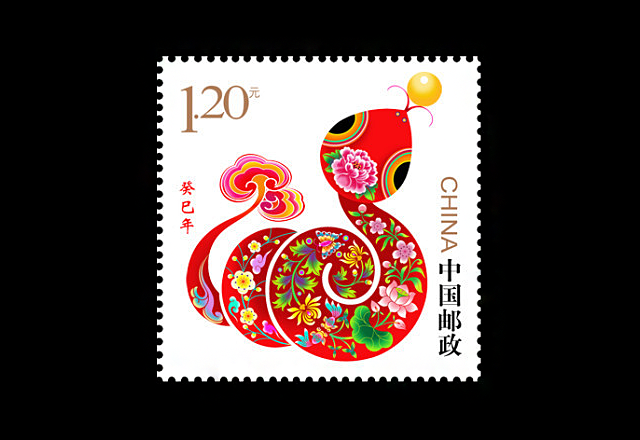 據(jù)介紹,《癸巳年》蛇年生肖郵票設(shè)計(jì)者為清華大學(xué)美術(shù)學(xué)院教授、博士生導(dǎo)師、2011年兔年生肖郵票設(shè)計(jì)者吳冠英。他表示,生肖郵票作為一種大眾的藝術(shù),需要被人普遍接受,所以在設(shè)計(jì)中加入了很多民間傳說等中國傳統(tǒng)語言。“蛇身用的是紅色,因?yàn)楣糯v赤蛇是大吉的意思,牡丹頭飾表示富貴,蛇身上代表四季的桃花、荷花、菊花、梅花,表達(dá)反復(fù)、長久的意思!睂τ谏咂鄙献顬榕c眾不同的珠子,吳冠英解釋說,這顆珠子源于晉代小說《搜神記》里蛇銜明珠以報恩的故事。