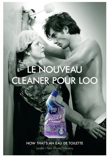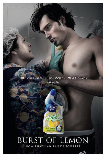 【浴廁清潔劑創(chuàng)意平面】“現(xiàn)在,這也是香水了!”——美女換成了歐巴桑!絕對的勵志啊。。。可是哥怎么微微有點HOLD不住捏!