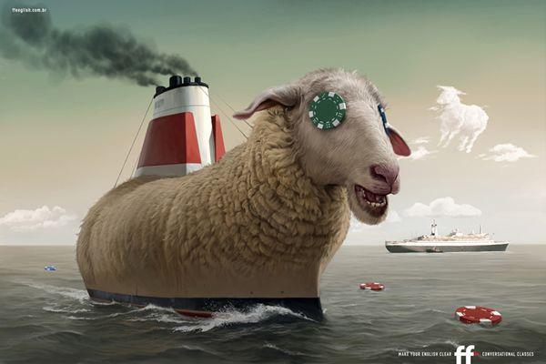 “Make your English clear”總部設(shè)在巴西3個廣告為“FF英語學(xué)!笔且唤M非常有想法不錯的概念廣告