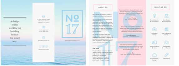 以下這些設(shè)計可以證你的宣傳冊不必長達多頁,它可以僅僅是張雙面打印的三折頁。