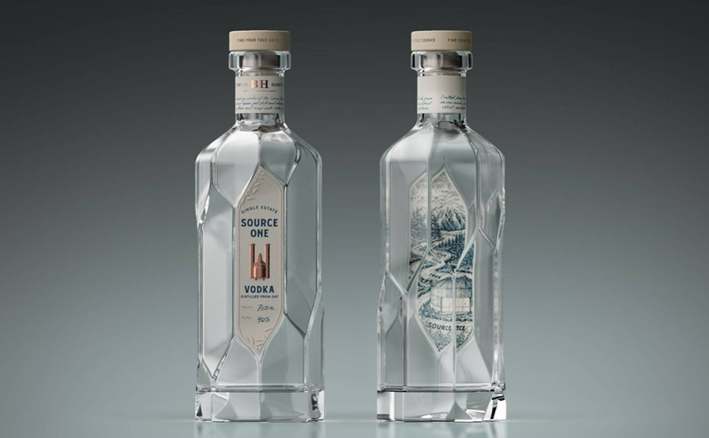 “源頭一號(hào)”釀酒廠生產(chǎn)的烈酒采用美國內(nèi)華達(dá)山脈的冰雪融水制作而成。當(dāng)?shù)厝藢⑷谒畠?chǔ)存在水井中,稱為“井水一號(hào)”,該伏特加因此得名“源頭一號(hào)”!霸搭^一號(hào)”包裝設(shè)計(jì)的靈感來源于復(fù)雜的溫室建筑元素,由偏置面組成的玻璃瓶結(jié)構(gòu),在轉(zhuǎn)動(dòng)時(shí)會(huì)產(chǎn)生螺旋狀插圖,形成一個(gè)不停轉(zhuǎn)動(dòng)的幻覺。