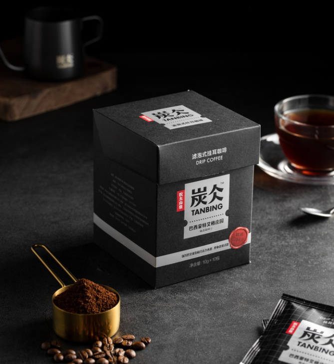 還有炭仌(bing)掛耳咖啡包裝設(shè)計(jì)也非常的高大上,以打造“0.01平方米咖啡館”為設(shè)計(jì)理念,分別設(shè)有小黑盒、小白盒和小棕盒三款包裝,類(lèi)似護(hù)膚品的取名以引起消費(fèi)者的新鮮感。