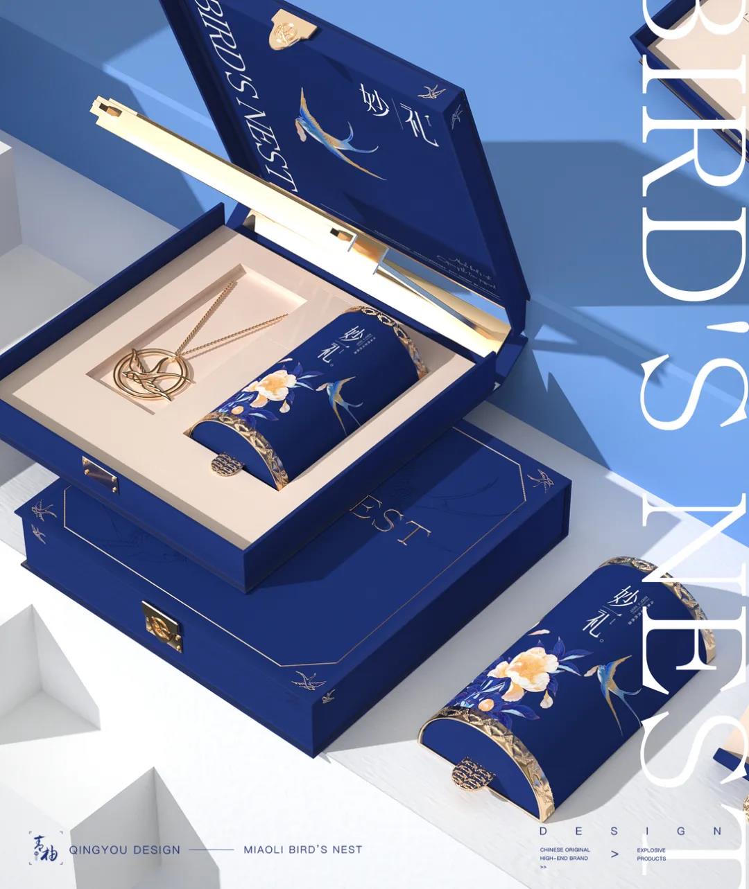 來(lái)自馬來(lái)西亞進(jìn)口品牌--妙禮燕窩。外觀創(chuàng)新的新包裝采用半弧形半圓柱體結(jié)構(gòu),可抽開(kāi)式的內(nèi)置燕窩,使得產(chǎn)品具備獨(dú)一無(wú)二的視覺(jué)識(shí)別。禮盒選擇燕子作為超級(jí)符號(hào)切入點(diǎn),從LOGO設(shè)計(jì)衍生到外包裝的暗紋設(shè)計(jì),形成品牌自身的視覺(jué)邏輯。禮盒以體現(xiàn)皇家貢品的驚喜感進(jìn)行設(shè)計(jì),打開(kāi)后可看見(jiàn)口含燕窩的金絲燕,中間的立體故宮角樓與窗花元素從蓋中出落,左側(cè)更有詩(shī)句映襯,使得包裝充滿互動(dòng)與故事。