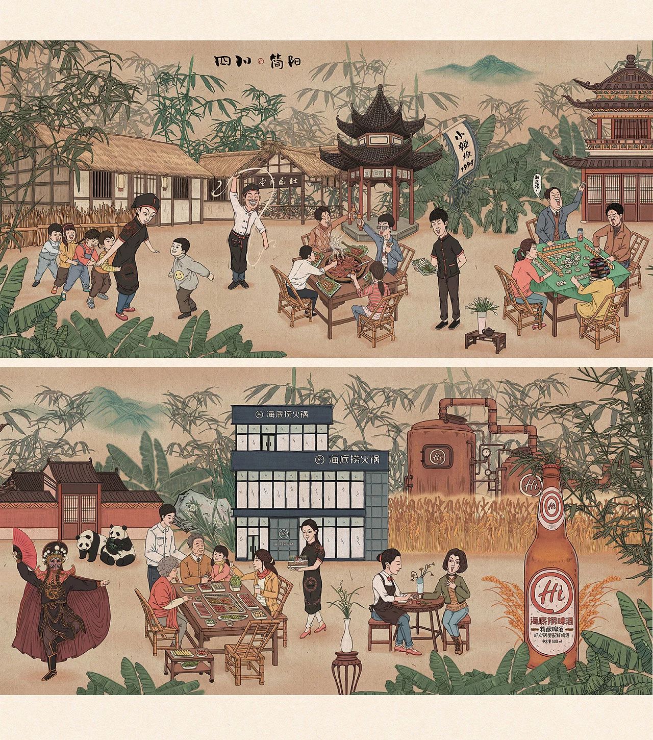 這個長卷描繪了四川人民和海底撈