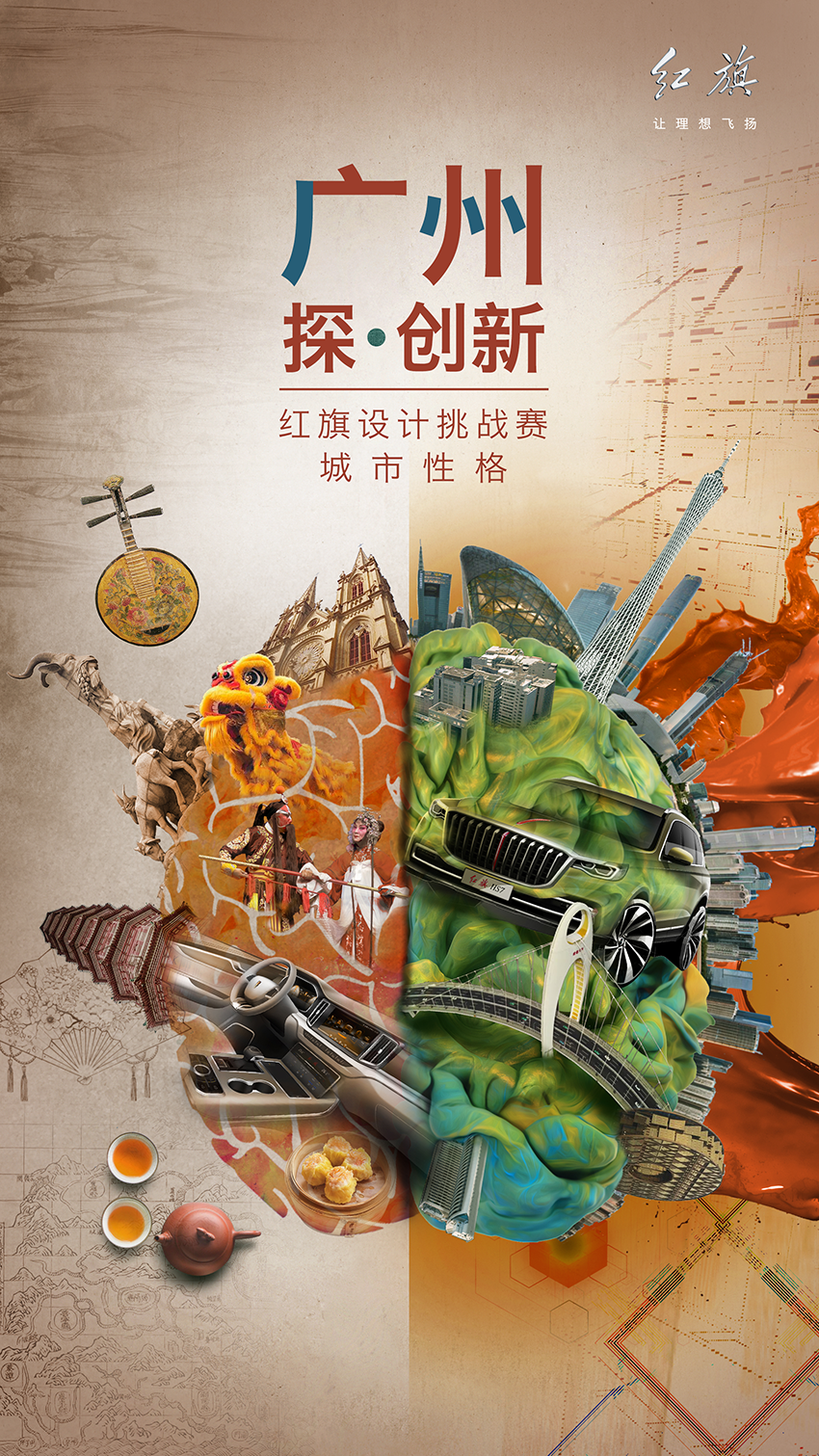廣州,這座包容卻不失自我的城市,自改革開(kāi)放以來(lái)發(fā)生翻天覆地變化的同時(shí),仍保留著自己獨(dú)有的城市特色。在自我中求創(chuàng)新的城市性格,也令無(wú)數(shù)熱愛(ài)生活又追求創(chuàng)新的人心向往之。在紅旗品牌舉辦的首屆紅旗設(shè)計(jì)挑戰(zhàn)賽中,廣州作為最具代表性的中國(guó)城市,也成為了賽事所指定的命題城市之一。而廣州在堅(jiān)持自我中探尋創(chuàng)新之路的城市性格,也與紅旗的新高尚美學(xué)不謀而合。品牌設(shè)計(jì)
