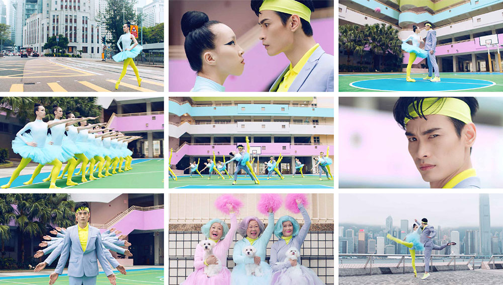 沒有任何言語,兩分多鐘的短片僅有音樂與舞者優(yōu)美律動(dòng),Pum Lefebure解釋即便少了語言聲音,但觀賞者能夠從舞者的身體、四肢擺動(dòng),甚至臉部表情來發(fā)想一段快樂的故事,搶眼的螢光綠、粉紅與冰藍(lán)色,搭配從彩虹籃球場、維多利亞港到傳統(tǒng)宴會(huì)廳等香港新舊交錯(cuò)的街景,很快便能擄獲觀者的心。當(dāng)然,除了舞者們精湛舞蹈技藝外,擔(dān)任配樂的波麗露舞曲,從經(jīng)典到加入嘻哈節(jié)奏的新編曲,也巧妙地讓整體編排上更有層次。