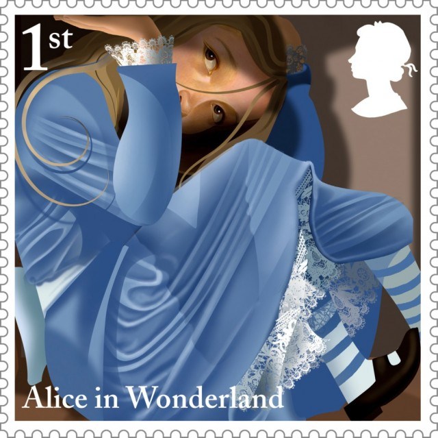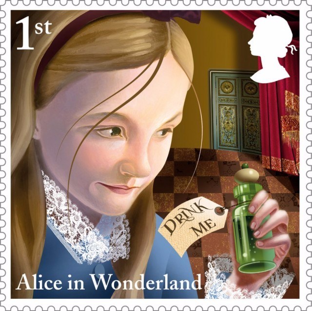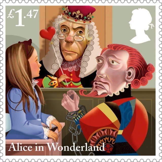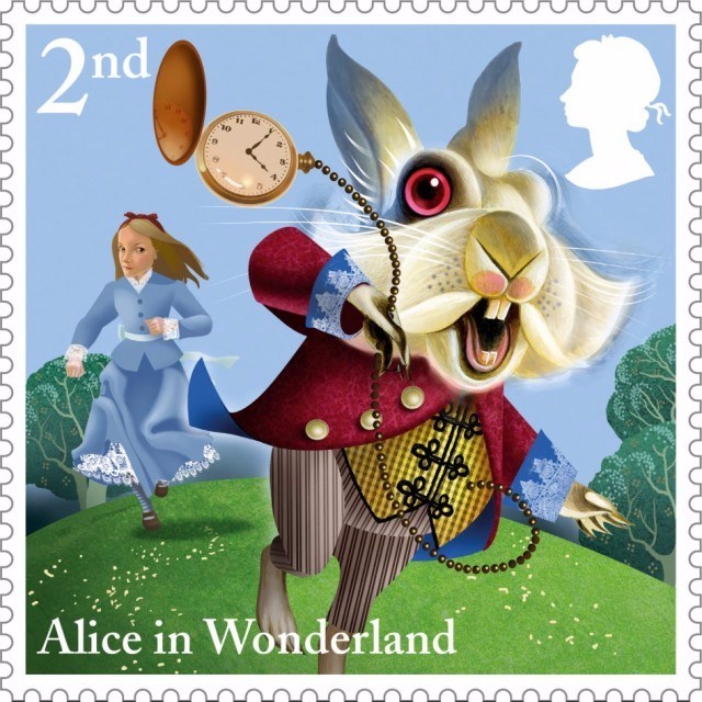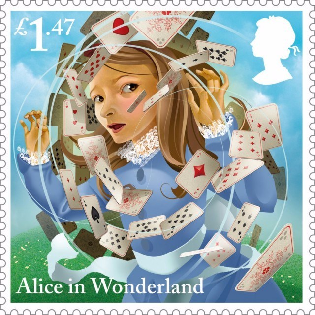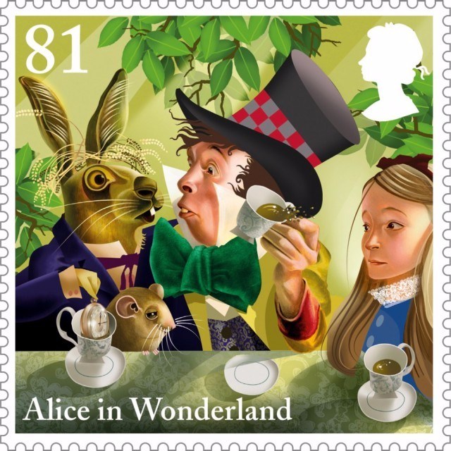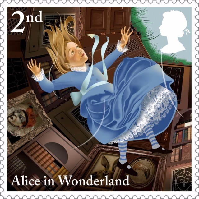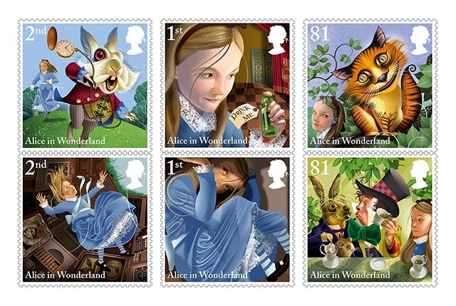 為慶祝英國作家劉易斯·卡羅爾(Lewis Caroll)的童話出版150周年,英國皇家郵政與著名插畫家Grahame Baker-Smith合作,圍繞著《愛麗絲夢游仙境》中的主要角色(如愛麗絲、白兔先生等)和經(jīng)典場景,繪制了10幅郵票。蘇州插畫設(shè)計