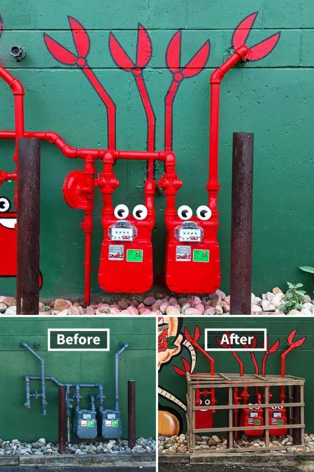 垃圾箱和空調(diào)外機(jī),搭配起來效果一流