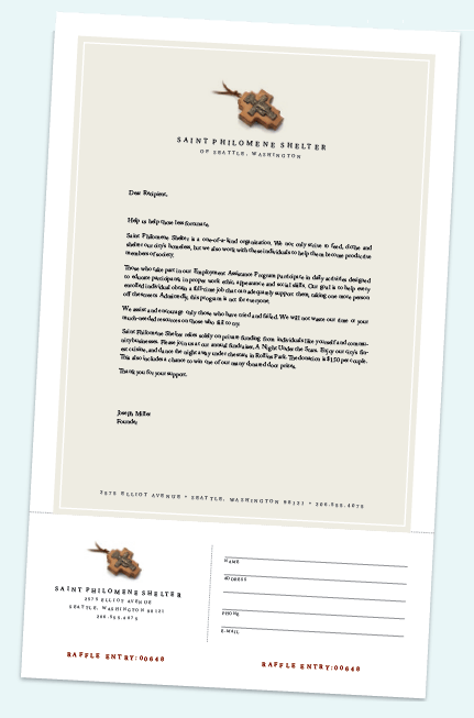 圣菲洛米彌收容所是一個(gè)為無(wú)家可歸的人服務(wù)的慈善機(jī)構(gòu),它會(huì)定期通過(guò)舉辦一些活動(dòng)來(lái)籌集善款。我們已經(jīng)為該機(jī)構(gòu)設(shè)計(jì)了兩用式的宣傳單張,該單張傳達(dá)了該機(jī)構(gòu)的信譽(yù)及權(quán)威,同時(shí),在該單張下方有一張可撕式的回復(fù)卡片(已經(jīng)在卡片與上方內(nèi)容的分界地方預(yù)先打了排孔以方便撕下)。我們是如何設(shè)計(jì)的? |