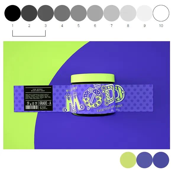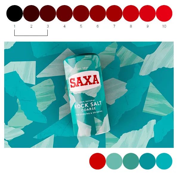4~6個(gè)色階間的飽和度差的顏色對(duì)比是飽和度中對(duì)比。這種對(duì)比傳遞含蓄、溫和的感覺(jué),在這種對(duì)比下的形象會(huì)有更高的可視度,畫面看起來(lái)也更加有活力,因此,飽和度中對(duì)比在設(shè)計(jì)中很常見(jiàn)。