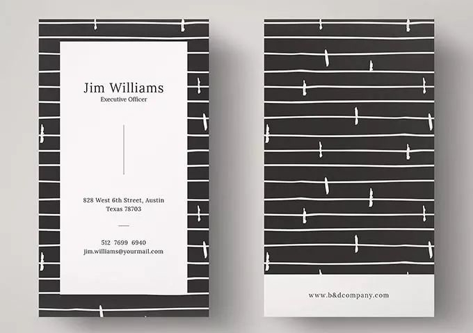 ②個性紋飾和邊框的運用。裝飾紋樣和邊框在名片設(shè)計中的運用,不僅豐富了名片的設(shè)計語言,而且增加了名片設(shè)計的表現(xiàn)力。例如:黑色的線條邊框很簡潔,將邊框放置在了版面的中心位置,使邊框在視覺上明確突出,同時也更加強(qiáng)調(diào)了邊框內(nèi)的文字信息。