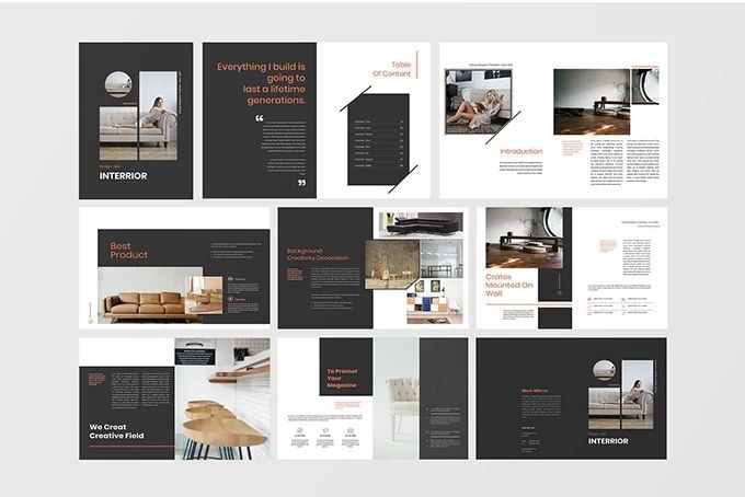 將各頁面分割成3等分,為整個跨頁創(chuàng)造出6個軸心。以3張圖片與一段文字為一組,垂直地分散于各個區(qū)域里。水平錯開文字位置的方式,除了能為版面創(chuàng)造動感外,也能讓頁面整體呈現(xiàn)出工整、統(tǒng)一的風格。