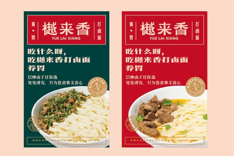 樾來(lái)香養(yǎng)胃打鹵面作為呼和浩特市地域性品牌,品牌定位為“打鹵面”這個(gè)品類(lèi),除將面條本身做到扎實(shí)之外,對(duì)于面的靈魂“鹵子”能做到?jīng)]有上限的創(chuàng)新空間,也給消費(fèi)帶來(lái)更加新鮮的味覺(jué)刺激。LOGO設(shè)計(jì)以純文字為主,樾來(lái)香三字加大加粗置于LOGO中間位置,線條柔軟,與面給人的感覺(jué)一樣,字形中各有一處斷口,似是要打破某一種連貫的感覺(jué),英文字體與底下的廣告語(yǔ)都是板板正正的,總體LOGO中規(guī)中矩,不算出彩,但勝在簡(jiǎn)潔明了。品牌采用了墨綠色、青綠色、杏色和金棕等顏色,整體色調(diào)是比較清新的,看起來(lái)清爽又不失味道,還是很容易給消費(fèi)者留下好感的。在匹配符號(hào)時(shí)選擇了“香”這個(gè)概念,香是品牌的符號(hào),讓人記住品牌,樾來(lái)香不好記,不好傳播,變成一個(gè)香字符號(hào)變得更容易傳播,讓香=樾來(lái)香,形成聯(lián)想和記憶。品牌輔助圖形設(shè)計(jì)中,很好的運(yùn)用了面條這一元素,不論是香字的造型還是其他延伸圖案,因?yàn)橛辛嗣鏃l線條的加塑,更加能體現(xiàn)面這一品類(lèi),奇特的造型也讓設(shè)計(jì)與其他面食品牌有了一定的差異性。輔助圖形與LOGO的結(jié)合中,香的符號(hào)格外明顯,面條的元素也展現(xiàn)的很完整,這是對(duì)品牌符號(hào)和品牌品類(lèi)的加強(qiáng)。圓形輔助圖形還有這一款強(qiáng)調(diào)三無(wú)的圖案,由中間的橢圓形中心,向圓的四周發(fā)射擴(kuò)散,紅色的內(nèi)容很是顯眼,正好突出其強(qiáng)調(diào)的三無(wú)。樾來(lái)香的輔助圖形眾多,這一套輔助圖形是用手繪的方式,將品牌的底氣和堅(jiān)持繪制出來(lái),優(yōu)質(zhì)面粉、自有牧場(chǎng)和新鮮蔬菜,繪制簡(jiǎn)單,卻很有力量感。