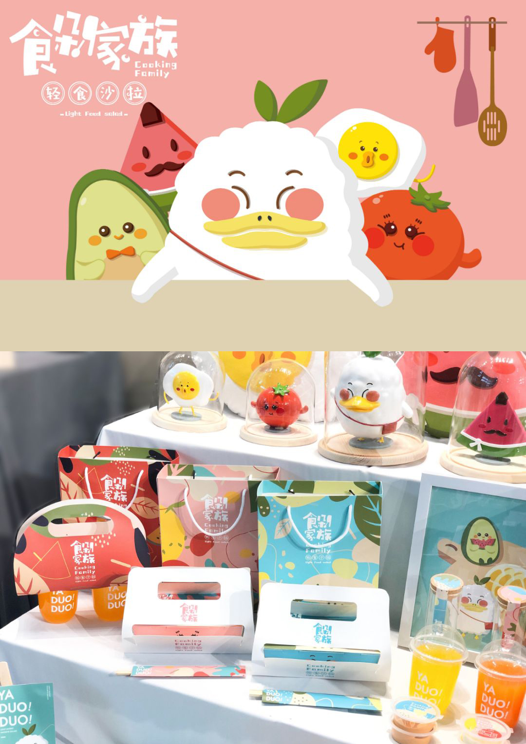 品牌將品牌的核心產(chǎn)品輕食沙拉中的牛油果、西紅柿、雞蛋等通過擬人化手法,設(shè)計(jì)出有趣有愛的吉祥物家族,塑造獨(dú)特的品牌視覺體系。每個吉祥物都設(shè)定了體現(xiàn)出相親相尊重的家庭相處之道。宣傳插畫以粉色及粉綠色為主色調(diào),在海報(bào)加入LOGO元素,用粉嫩的色彩、擬人的方式,表現(xiàn)出蔬菜的特點(diǎn)和趣味故事。將所有產(chǎn)品都擺在一起,萌趣可愛的蔬菜形象吸引著消費(fèi)者的視線,賦予了品牌親和力。