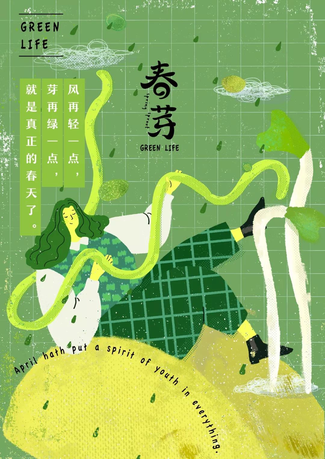 春芽品牌。品牌以充滿春天氣息的綠色為主色調(diào),放眼過去是給人以舒服的感覺。黑色的豎型排版LOGO,使得畫面簡約而整潔。