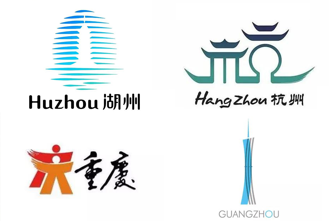 我第一個感覺就是視覺上想要傳遞的信息太!多!了!插畫設(shè)計結(jié)合各種元素呈現(xiàn)畫面這個操作還算是合理的,但是——LOGO設(shè)計給人的感覺就是拼湊元素式地匯聚城市特色。這繪制的節(jié)奏就像是先來個具城市特色的梯田和山脈,再把建筑特色添上,最后加上些鳥來豐富一下,完事!整個設(shè)計傳達的信息太多,給人一種“眼花繚亂”的感覺,這樣反而讓人毫無印象,記不住。所以,在LOGO的設(shè)計上以簡化的形式去呈現(xiàn)城市特色反而更直觀明了。像湖州城市LOGO,以剪影的形式結(jié)合了現(xiàn)代化地標“月亮酒店”,傳統(tǒng)標志性建筑“飛英塔”及太湖三大元素。LOGO通過采用統(tǒng)一的線條描繪風(fēng),使這些元素形成一個整體視覺上傳遞了城市文化,又不失簡潔大氣。杭州城市LOGO,以漢字“杭”的篆書進行演變,融合航船、城郭、建筑、拱橋等元素,以“字+圖形”結(jié)合的形式,達到了簡化。重慶城市LOGO,采用了“人”為主要視覺元素,雙人組成了一個“慶”字,并且“人人重慶”如今也成為了城市形象標志。還有廣州城市LOGO,直接運用具地標性建筑廣州塔融合“州”字設(shè)計?梢钥吹揭陨线@幾個城市LOGO雖然看起來很簡潔,但是傳達的城市文化含義厚重。