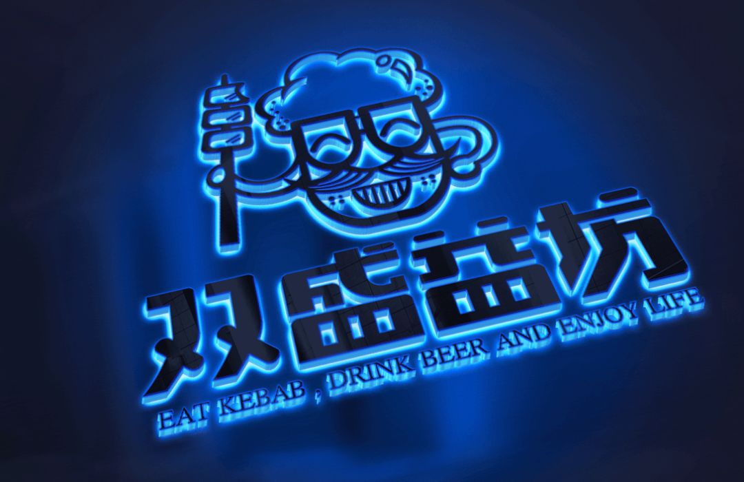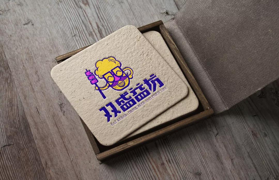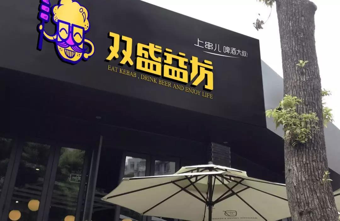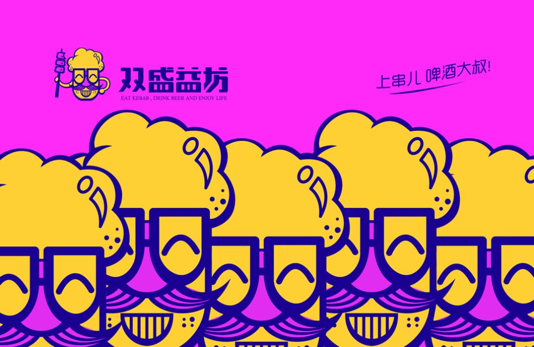 其黑色的招牌底搭配亮眼的黃色,使品牌更顯年輕有活力,slogan“上串兒,啤酒大叔”,親切的語氣凸顯了品牌與顧客的親近感。主視覺形象的設(shè)計融合了烤串+啤酒+大叔,啤酒和胡子大叔的矢量輪廓完美地結(jié)合,營造出幽默有趣且嘻哈風(fēng)的啤酒大叔形象,通過墨鏡與胡子拼接成“雙”字,呼應(yīng)了品牌名稱“雙盛益坊”。大膽地使用黃、紫對比色作為品牌主色調(diào),造成吸睛的視覺效果,且突出LOGO形象,筆畫粗細(xì)的變化豐富了主視覺形象,使其變得更有層次感。
