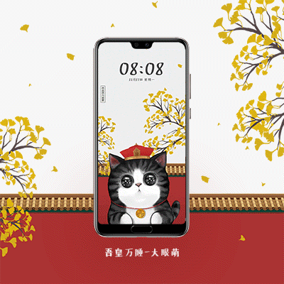 吾皇主題設計出來后,對于不同的手機用戶又如何定制化設計? 譬如,對于Nova4手機用戶,華為主題做了一整套的定制設計,例如 《小魚干》基于“極點屏”的手機特色,在畫面上加入小魚簍、魚眼睛等創(chuàng)意設計,成為點睛之筆,賺足了粉絲的眼球與好評。