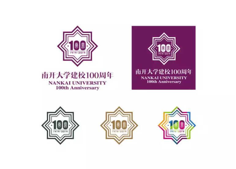 設(shè)計理念:南開大學(xué)百年校慶LOGO的主體由阿拉伯?dāng)?shù)字“100”、百年紀(jì)年及八角星形的三重組合這三部分共同組成。其中數(shù)字“100”的兩個“0”內(nèi)分別嵌入了南開大學(xué);罩小澳稀、“開”兩個字的篆體字樣,并在下方輔以紀(jì)年“1919-2019”,寓意滄桑歷史,世代銘記,百年南開,繼往開來。